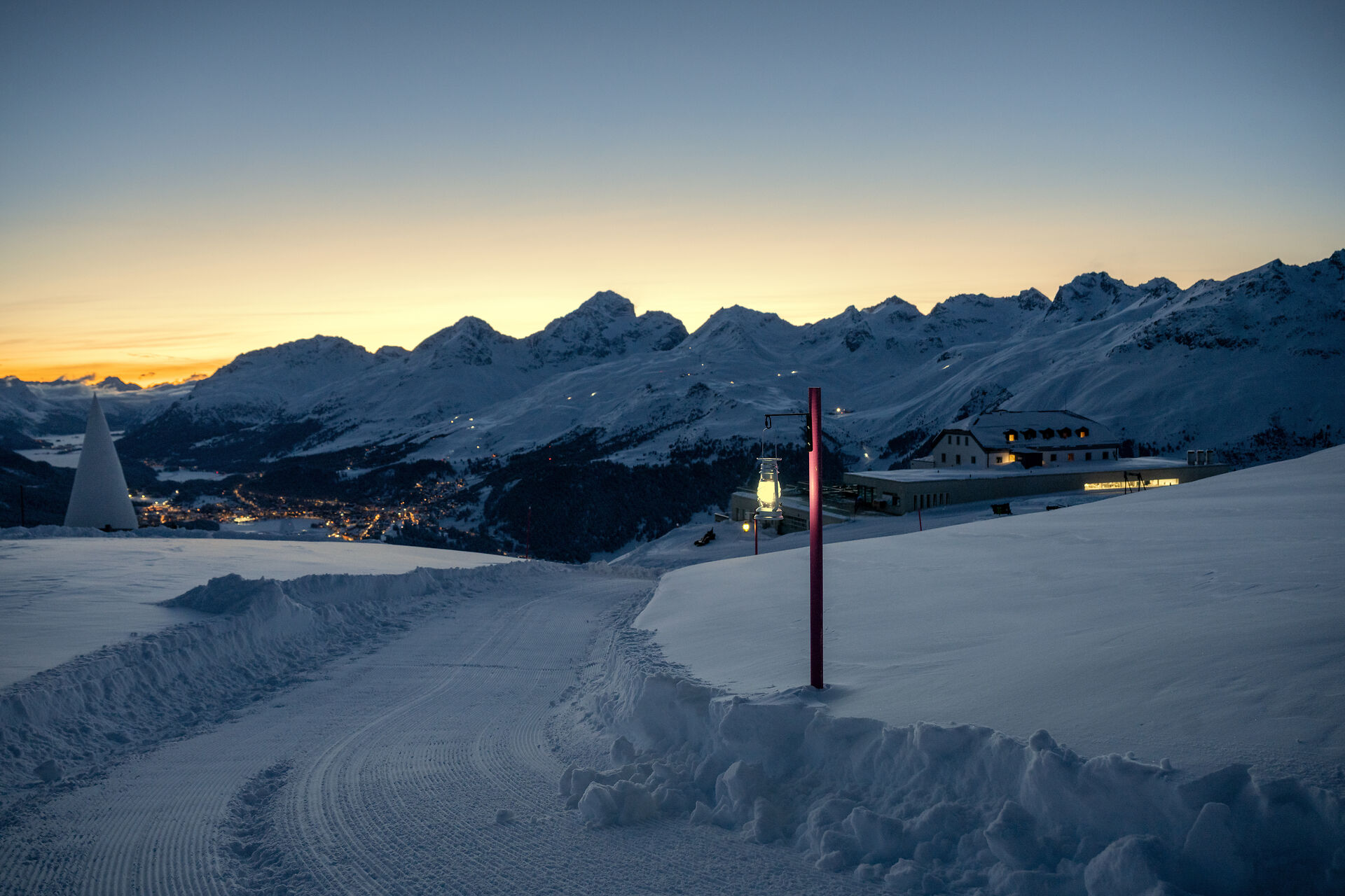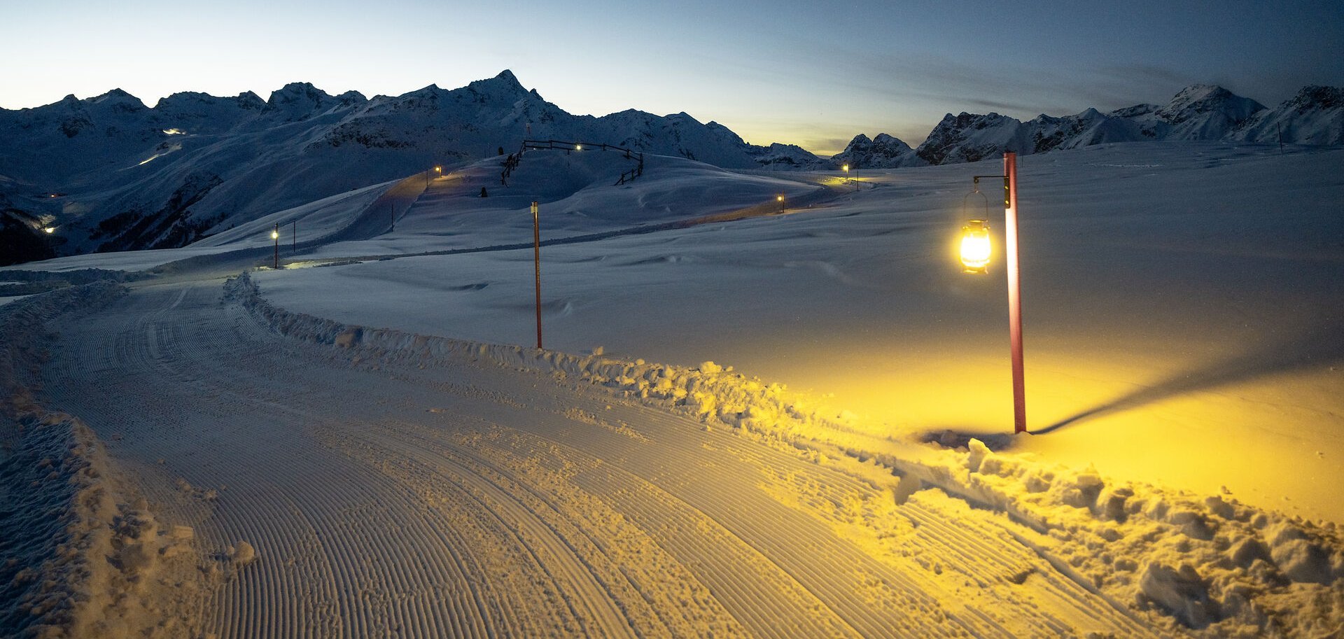 When the sun sinks behind the mountain peaks and dusk bathes the valley in soft light, a special winter experience begins on Muottas Muragl: the illuminated lantern trail. Many lanterns light up the prepared path through the snow-covered landscape, inviting you to take a walk full of peace, magic and romance.
