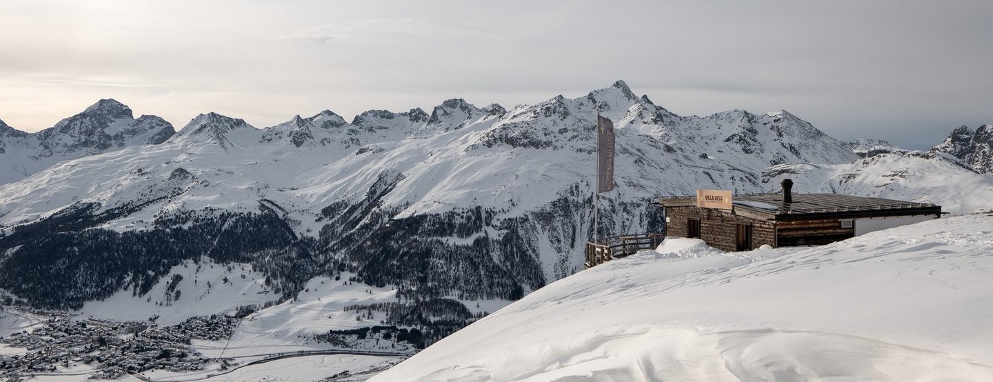 The modern restaurant with large glass front offers a magnificent view of the Engadin mountains and provides an exciting contrast to the pristine nature all around.