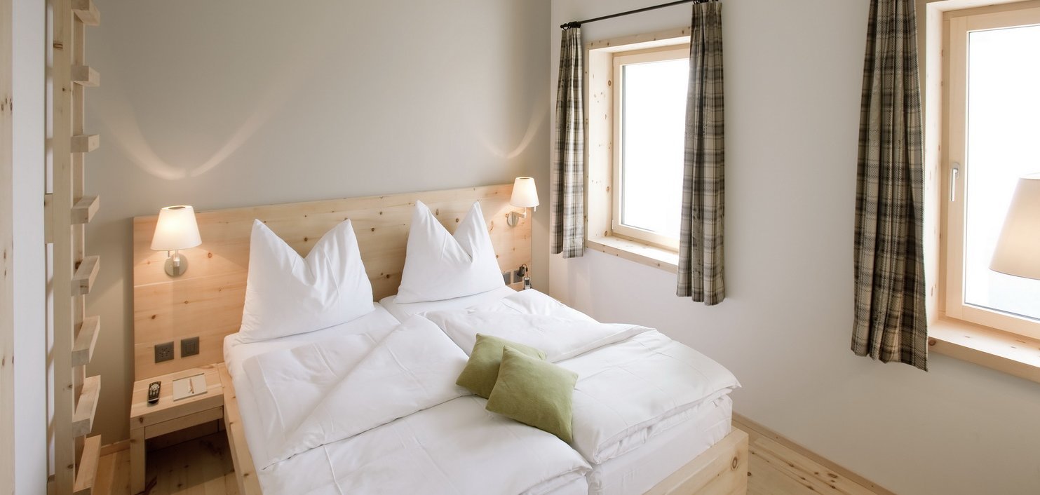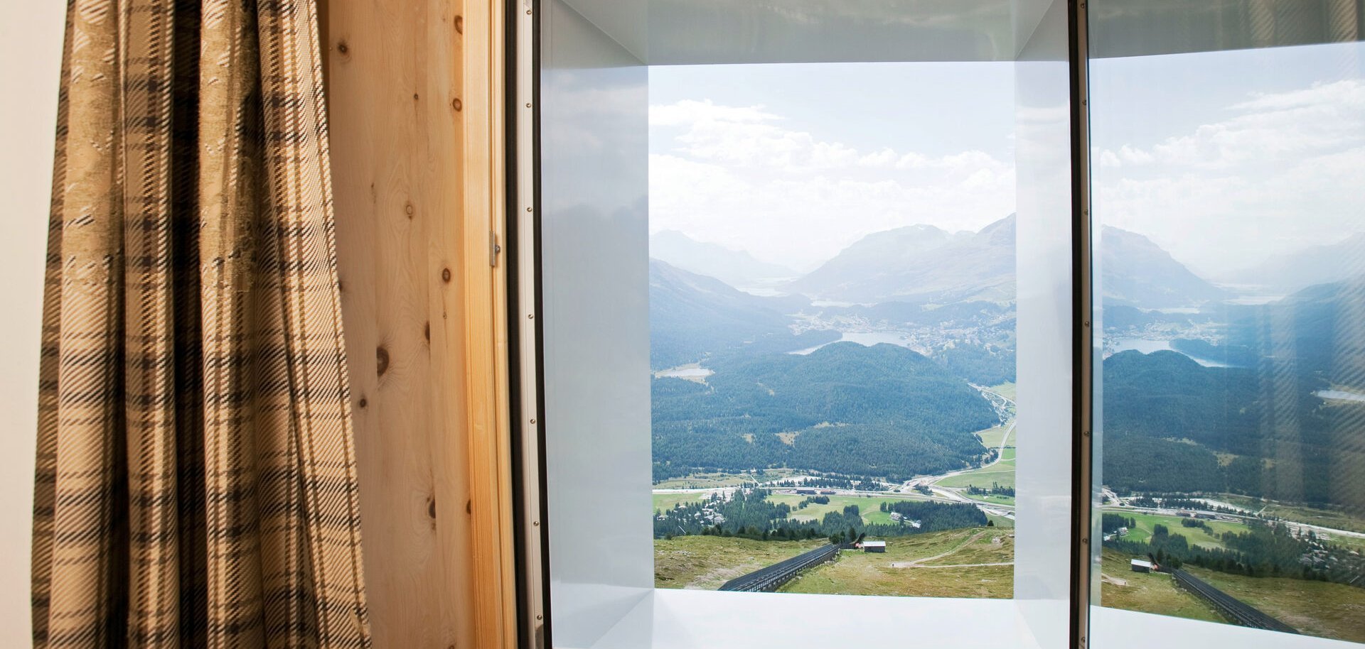 From this room you will experience a wonderful view of the Upper Engadin lake district. Equipped with a double bed, a gallery with additional sleeping possibilities and a cozy seating area, the double room Bellavista is perfectly suited for your short holiday at 2456 metres above sea level.