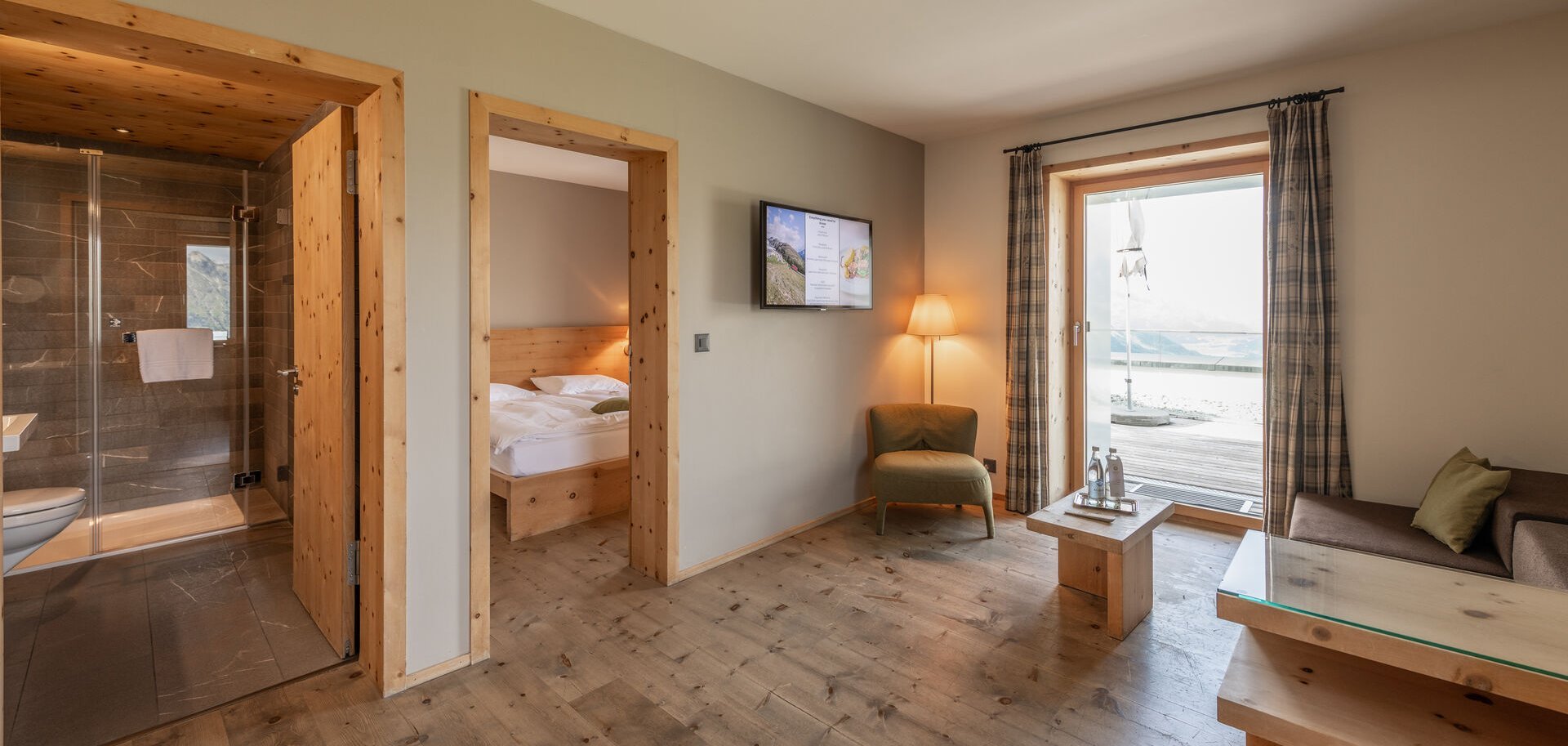 Experience unforgettable moments in our largest room category - our jewel for very special occasions. Stylishly and comfortably furnished, the 26-square-metre Junior Suite has a separate sleeping and living area as well as a spacious roof terrace. Wake up in the morning, open the curtains and enjoy the unique view of the glittering lakes of the Upper Engadin.